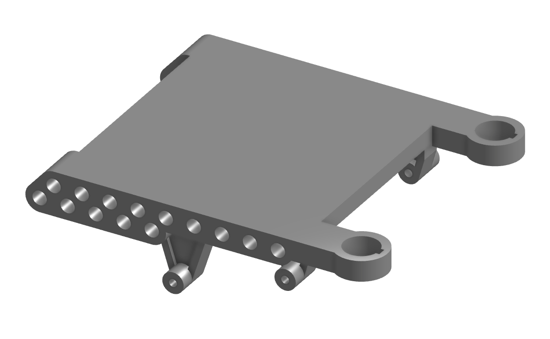 Replacement for the stock ESC platform, also with a multitude of holes for mounting the carisma shocks. Also slightly lowers the ESC.